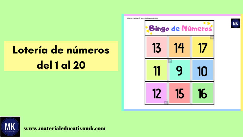 Descarga nuestro bingo de números del 1 al 20 para imprimir en pdf. Es perfecto para niños de preescolar y de primaria.