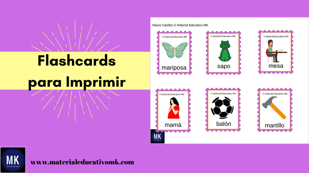 Nuestro archivo en PDF incluye más de 30 flashcards (vocabulario basico de Preescolar y 1er grado de primaria) cada una con dibujo y su respectivo nombre.